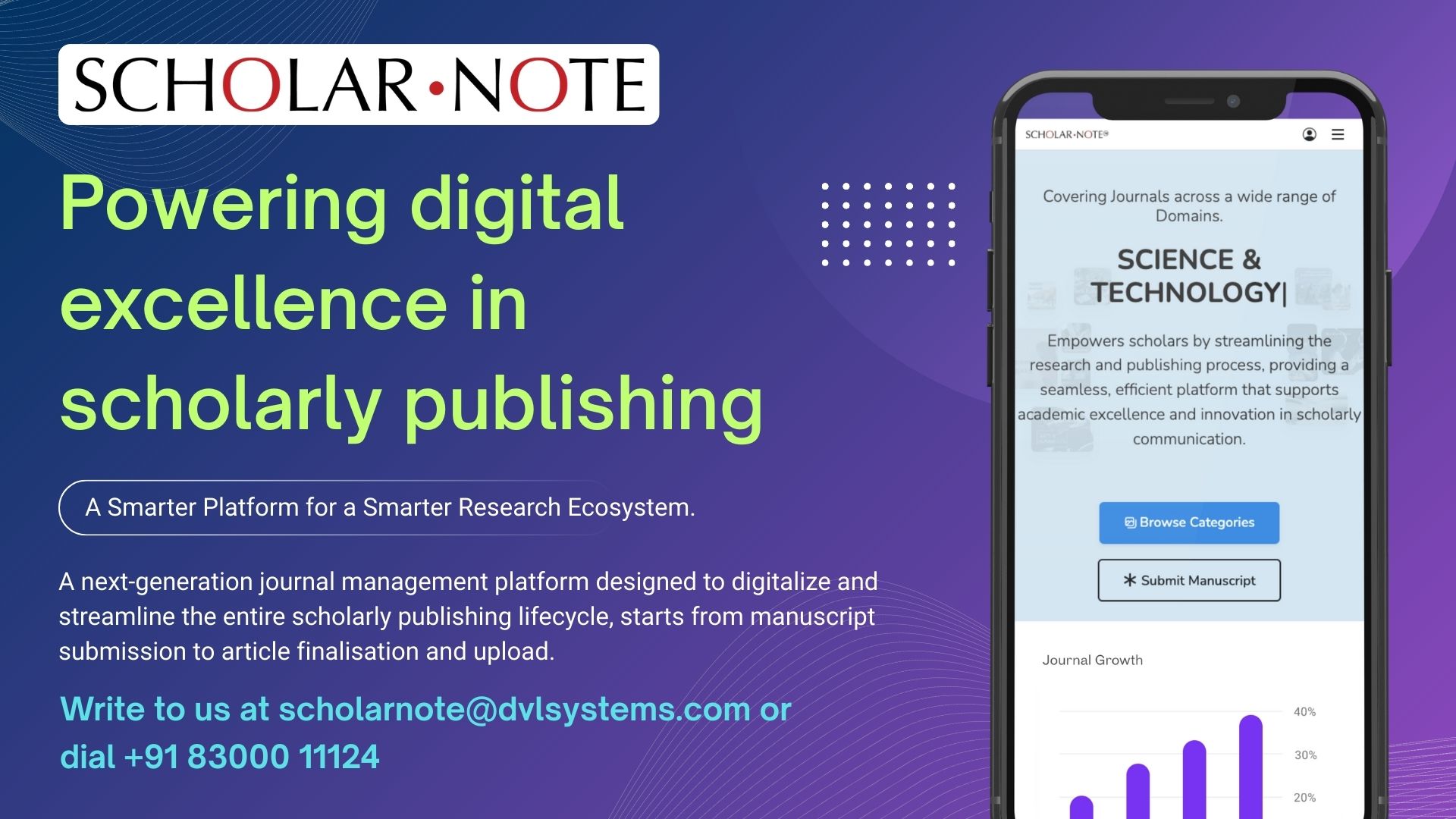 ScholarNote is a comprehensive Journal Management System designed to manage and automate the complete scholarly publishing lifecycle, from manuscript submission to editorial decision-making and publication workflows.